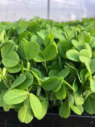 Our micro greens are greenhouse grown here on the farm in Kittery. We use certified organic Vermont Compost, fresh air, sunshine and lots of love and care to offer you the freshest greens possible.